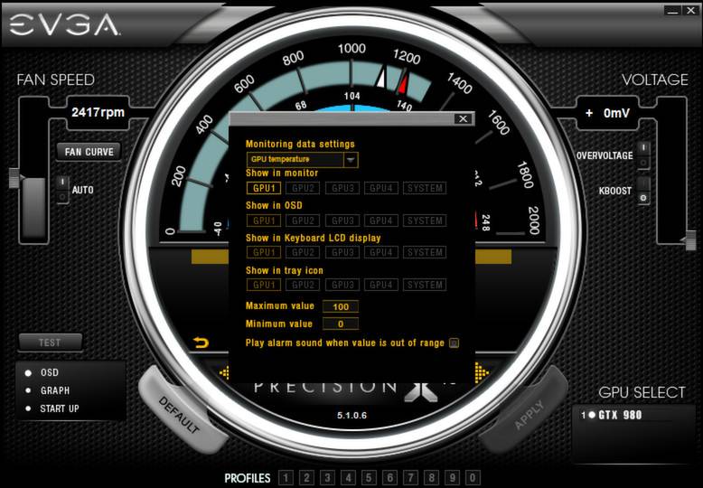 Grafická karta EVGA PrecisionX umožňuje sledovať teplotu grafického procesora, rýchlosť otáčania ventilátora atď. Navyše, s podporou OSD v hre programu si môžete prezerať svoje systémové údaje, aj keď ste v hre.